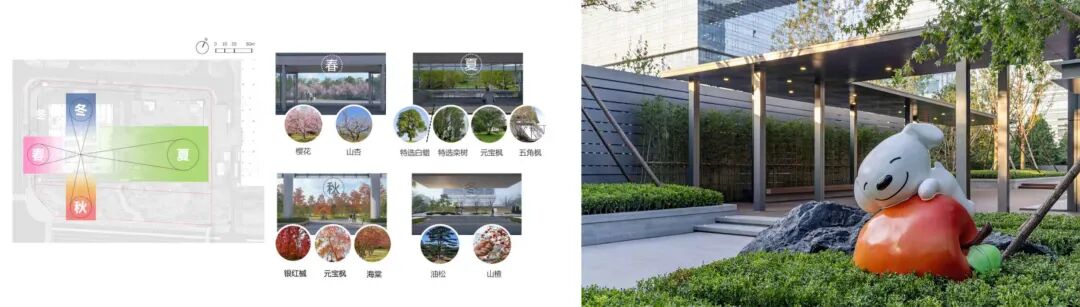 “呼吸感”还体现在极为考究的园林造景。喷泉、跑道、长廊、花园……四季有不同的花,结不同的果。摘下的山楂、海棠果和大柿子放在前台随便拿,有时还会做成糖葫芦发给大家,或者干脆邀请员工一起去树上摘果子,集观景和互动体验于一体。